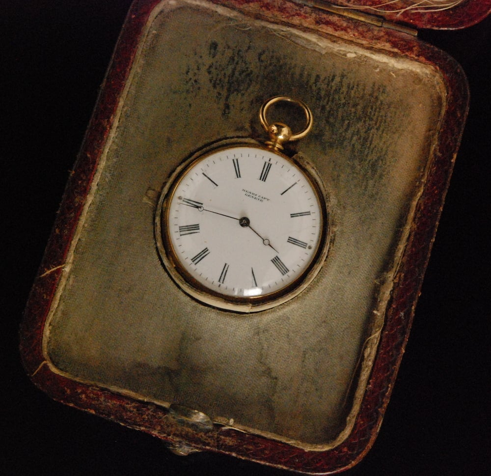 2017 - auction 30 Sep 2017, "A late 19th Century 18ct open faced fusee fob watch, Roman numerals to a white enamelled dial marked Henry Capt, Geneve, cased." [Does this really have a fusee?, do they know what theyre talking about?] |
