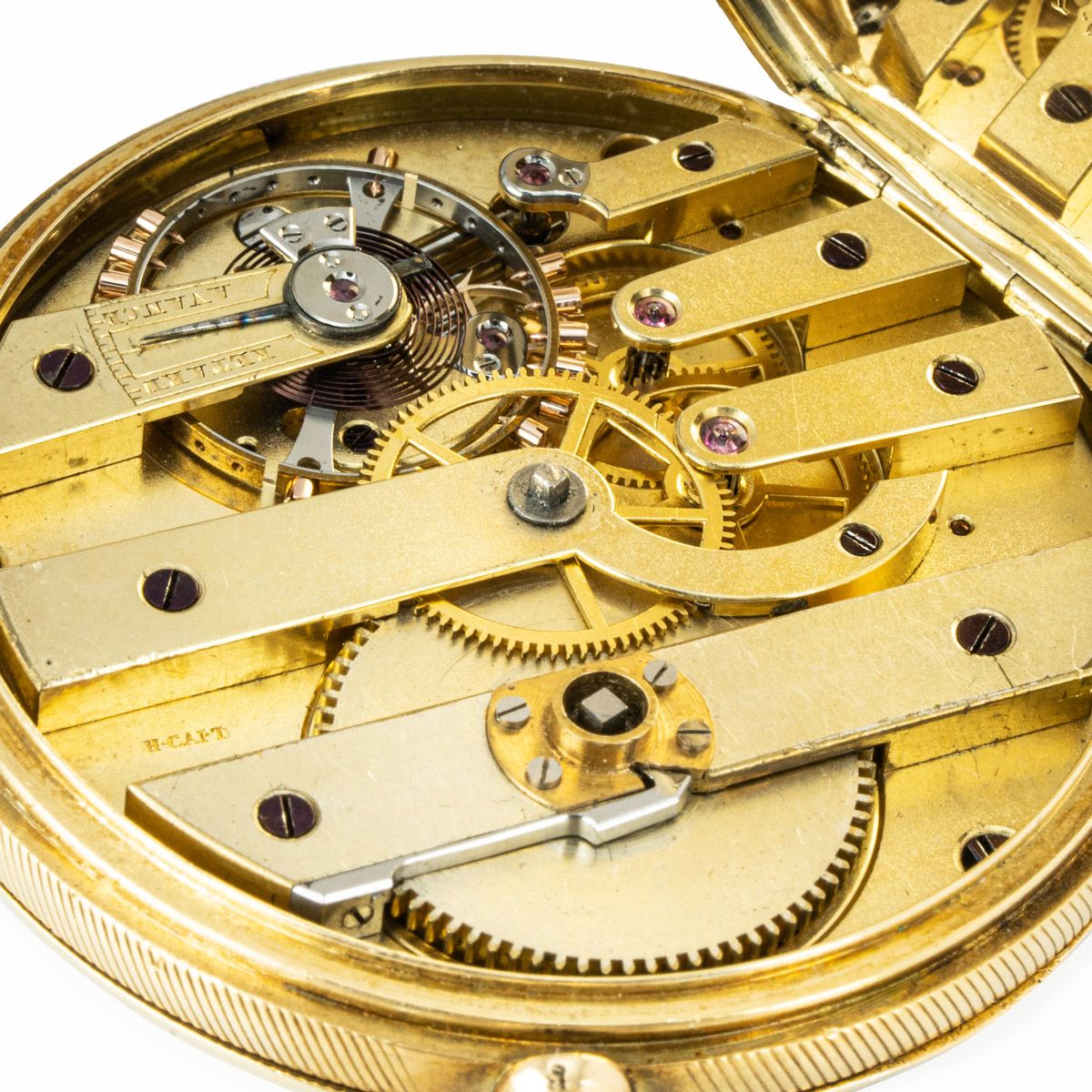 Movement: Gilt, detent chronometer escapement, signed "Henry Capt"