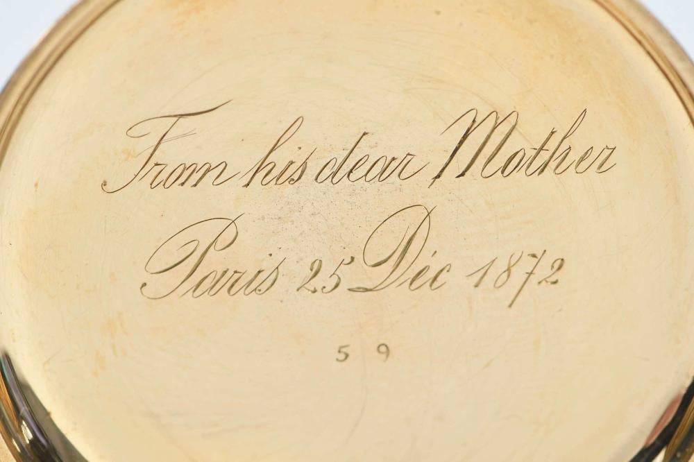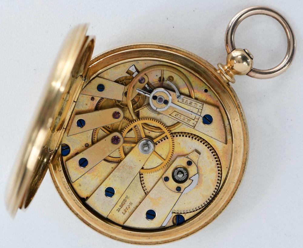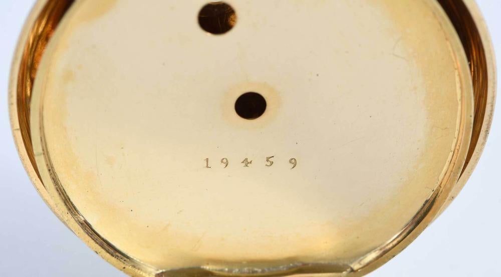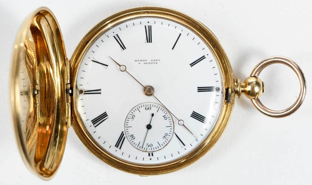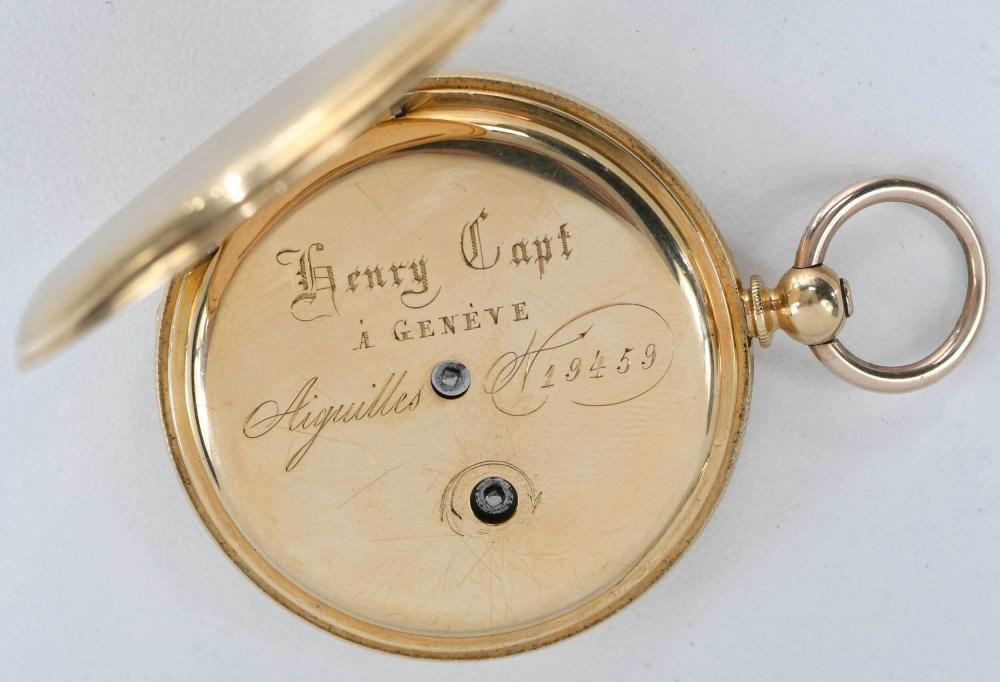 40mm Hunter case, serial #19459, inside case stamped "19459, AV", engraved "Henry Capt, A Geneve, N. 19459", tested 18kt., movement marked "H.Capt, A Geneve", 53 grams